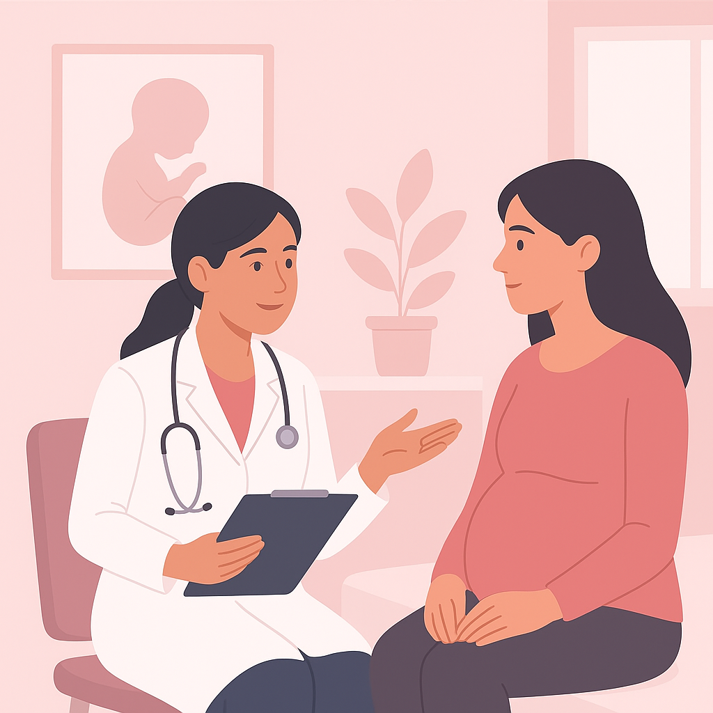 Consulta médica para acompanhar a gestação, monitorar a saúde da mãe e do bebê e orientar cuidados pré-natais.