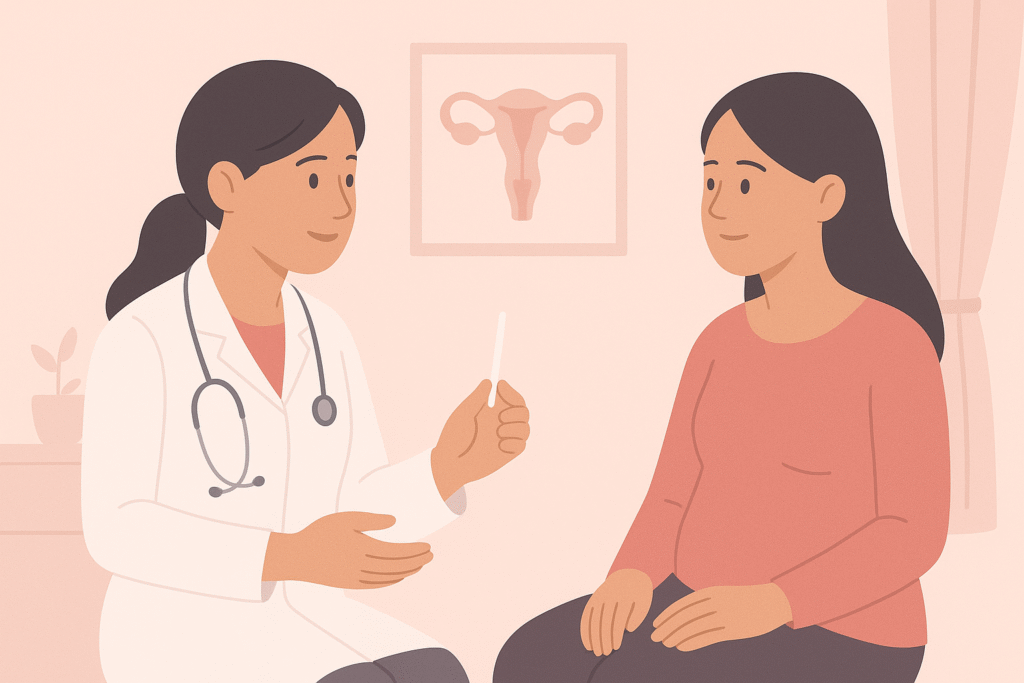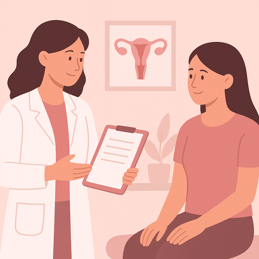 Consulta médica para avaliação da saúde da mulher, prevenção e orientação sobre cuidados ginecológicos.